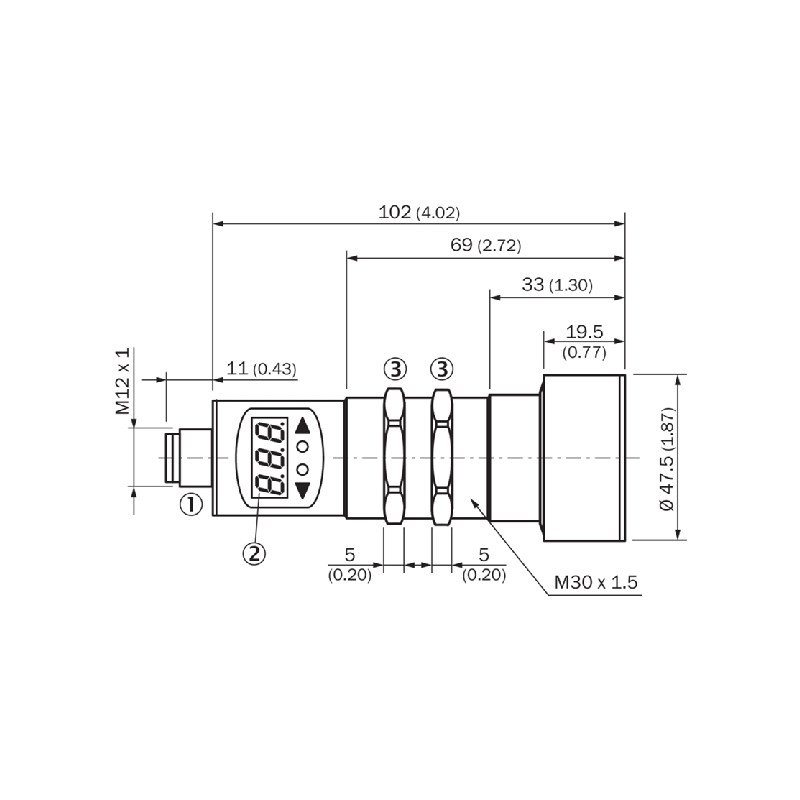 Ultrasonic Level Sensor M30 0.35-3.4M, 4-20mA, M12-5pin