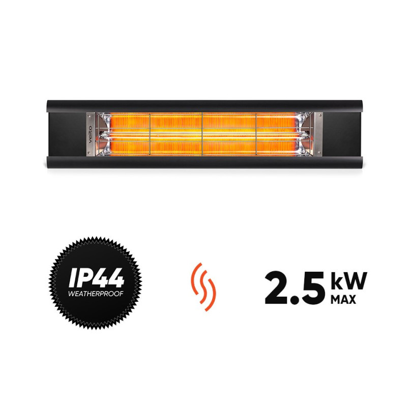 Veito infraraudonųjų spindulių šildytuvai su anglimi šildo greitai ir maloniai. Šie šildytuvai yra pagaminti iš aukštos kokybės perdirbamų medžiagų, tokių kaip aliuminis ir stiklas. Pastarojo metalo pagrindu pagamintas reflektorius išgauna maksimalią šildymo naudą, skleidžiant vidutinio ilgumo infraraudonųjų spindulių bangas. Tvirti ir vandeniui atsparūs (IP44) Veito Aero šildytuvai yra stilingo dizaino ir puikiai tinka naudoti tiek namuose, tiek komercinės paskirties patalpose, viduje ir lauke. Jie idealiai pritaikyti namams, žiemos sodui, terasai, vonios kambariui, restoranams, biurams, gamykloms, sporto salėms ir kt.