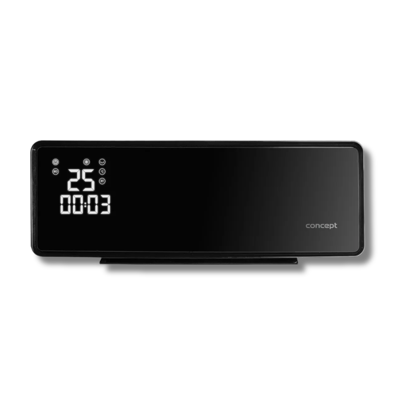 Šildytuvas išsiskiria moderniu juodu dizainu su stiklo priekiniu skydeliu, LED ekranu ir nuotolinio valdymo pultu. Jis užtikrina ne tik efektyvų šildymą, bet ir estetinį priedą prie modernaus interjero.