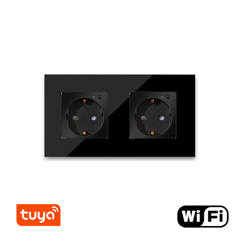 Dvivietis WiFi kištukinis lizdas su stikliniu rėmeliu Feelspot, juodas