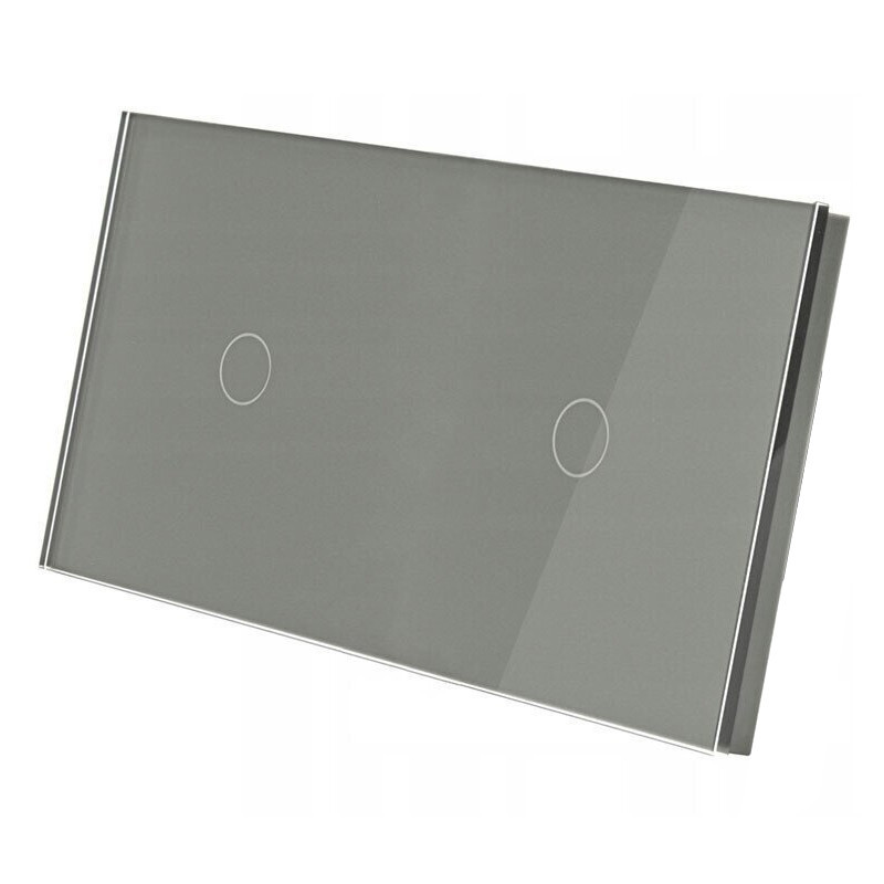 Grūdinto stiklo sensorinis dvivietis vienpolis jungiklio dangtelis Feelspot FSSD211G gali būti komplektuojamas su bet kuriuo jungikliu, rozete ir kitais lizdais.