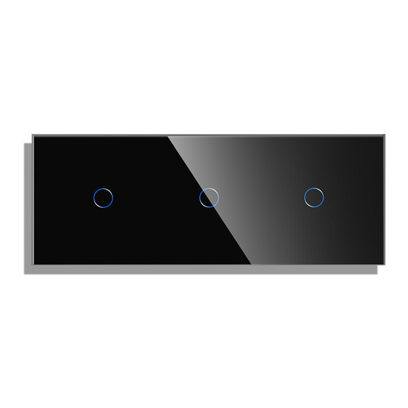 Grūdinto stiklo sensorinis trivietis vienpolis jungiklio dangtelis Feelspot FSSD3111B gali būti komplektuojamas su bet kuriuo jungikliu, rozete ir kitais lizdais.