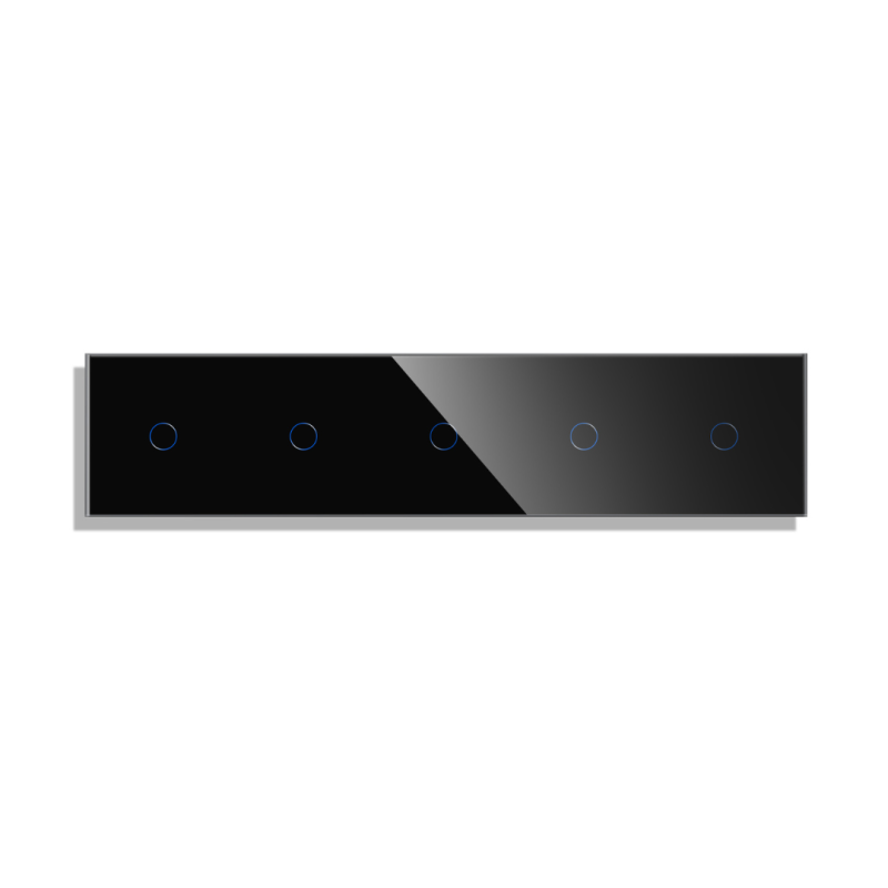 Grūdinto stiklo sensorinis penkiavietis vienpolis jungiklio dangtelis Feelspot FSSD511111B gali būti komplektuojamas su bet kuriuo jungikliu, rozete ir kitais lizdais.