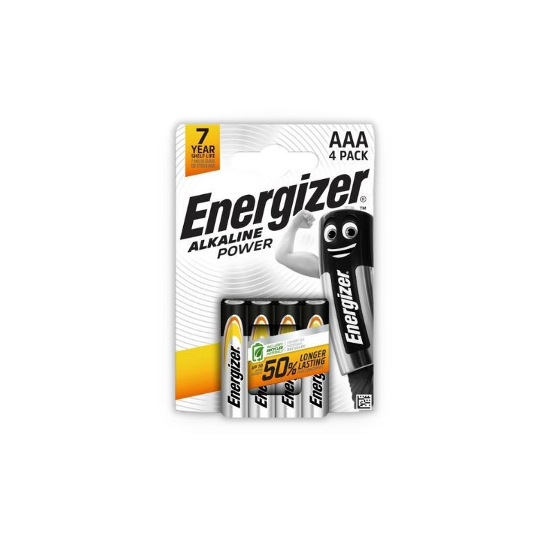 Šarminės baterijos „Energizer Alkaline Power AAA“ – patikima energija jūsų kasdieniams prietaisams. Rinkitės „Energizer Alkaline Power AAA“ baterijas – tai patikimas ir ilgai tarnaujantis energijos šaltinis jūsų namų elektronikai. Šios šarminės baterijos specialiai sukurtos dažnai naudojamiems prietaisams – žibintuvėliams, žaislams, nuotolinio valdymo pulteliams, laikrodžiams ir žaidimų valdikliams.