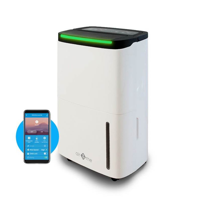 Oro sausintuvas – drėgmės surinkėjas Air&Me Rohan yra efektyvus ir galingas buitinis oro sausintuvas su kompresoriumi, kuris sausina orą sukurdamas aukštą temperatūros skirtumą. Oro sausintuvas tinkamas sausinti patalpas iki 200 m2 ir galintis sugerti iki 50 litrų vandens per dieną. Oro sausintuvas – drėgmės surinkėjas Air&Me Rohan užkirs kelią pelėsio, grybelio atsiradimui, išnaikins ant langų susidariusį kondensatą, išvalys vidaus patalpų orą nuo erzinančių gyvūnų plaukų, žiedadulkių, dulkių, bakterijų ir nemalonių kvapų. Įrenginyje integruotas LED indikatorius, kuris sviečiant spalvoms nurodo apie drėgmės lygį kambaryje.