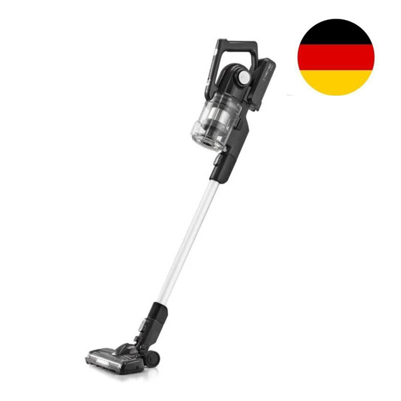 Belaidis TROTEC dulkių siurblys -šluota „2-in-1“: belaidis vertikalus dulkių siurblys ir kompaktiškas rankinis dulkių siurblys su galinga ciklono technologija, HEPA filtru ir LED apšvietimu.