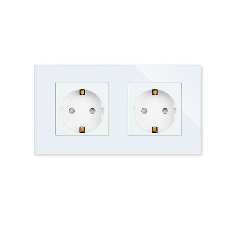 Dvivietis kištukinis lizdas su stikliniu rėmeliu Feelspot, baltas