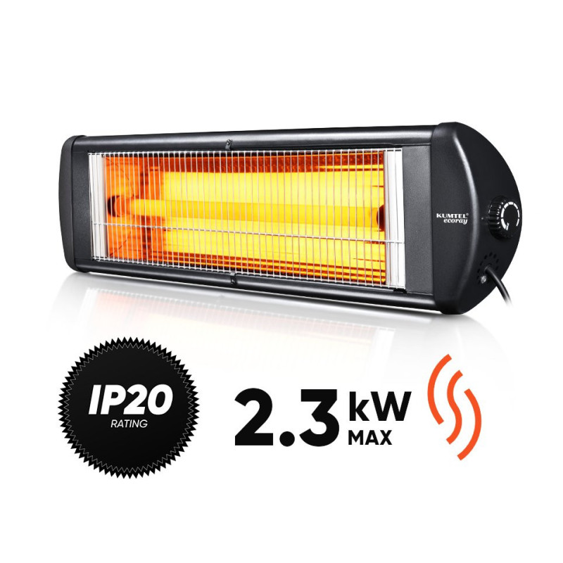 Infraraudonųjų spindulių šildytuvai yra puikus sprendimas siekiantiems užtikrinti pakankamą didelių patalpų šildymą ir kartu sutaupyti. Kumtel Ecoray EX-23 - tai prie sienos montuojamas šildytuvas su reguliuojamu termostatu. IP20 apsaugos klasė užtikrina saugų šildytuvo naudojimą terasose, soduose ar kitose atvirose erdvėse. Lauke prietaisas turėtų būti montuojamas po stogeliu taip, kad būtų apsaugotas nuo stiprių liūčių.
